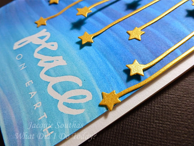 To keep the design simple, an open frame is made with two square dies nested together and a matching enamel dot is place in the middle of the snowflakes. This is another sentiment from the Technique Tuesday Jingle All The Way stamp set that I've used a few times this week.