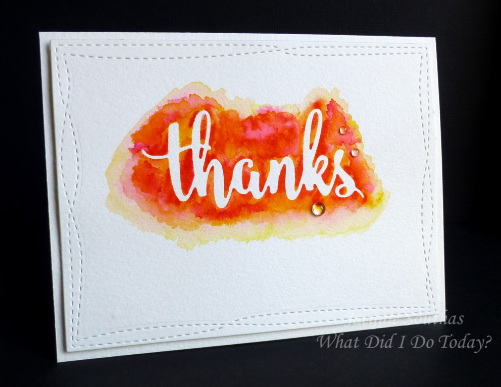 This card is also being entered in the lovely Darnell's NBUS #7 Challenge. I picked up a number of MFT dies earlier this summer, included this great stitched tag. I punched the hole and added a hole protector from a second NBUS tag set. I encourage you to use something from your new craft supplies and play along on this fun challenge (or at least check out what everyone else has been buying).