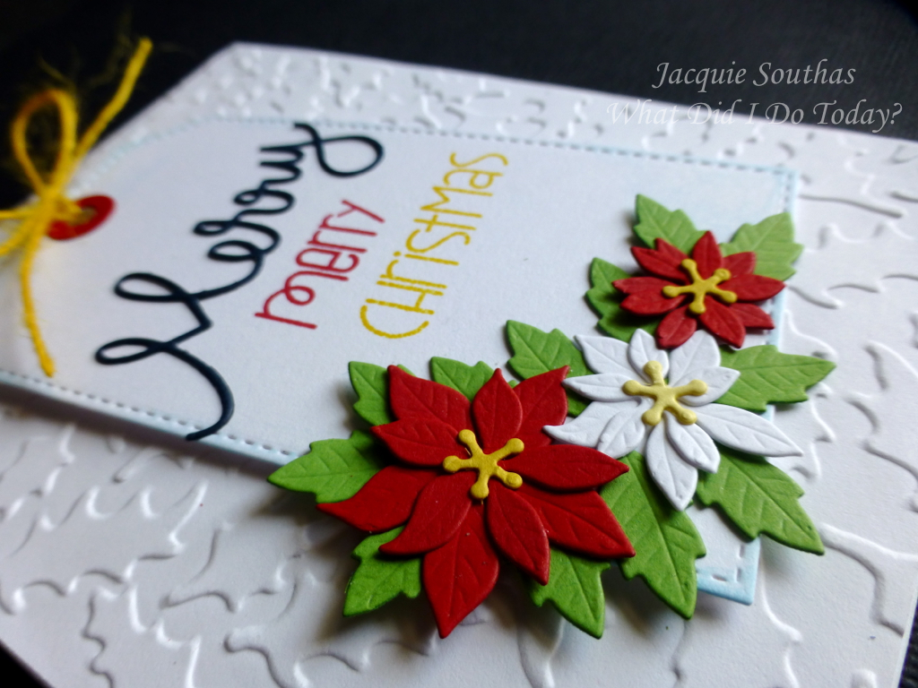I had major poinsettia envy when I saw Meredith MacRitchie's gorgeous card for the Muse Christmas Visions Challenge #59. That is not patterned paper on her card! I really need to get a poinsettia stamp into my collection this year, but for now have to make do with a sweet Poppystamps Poinsettia die.